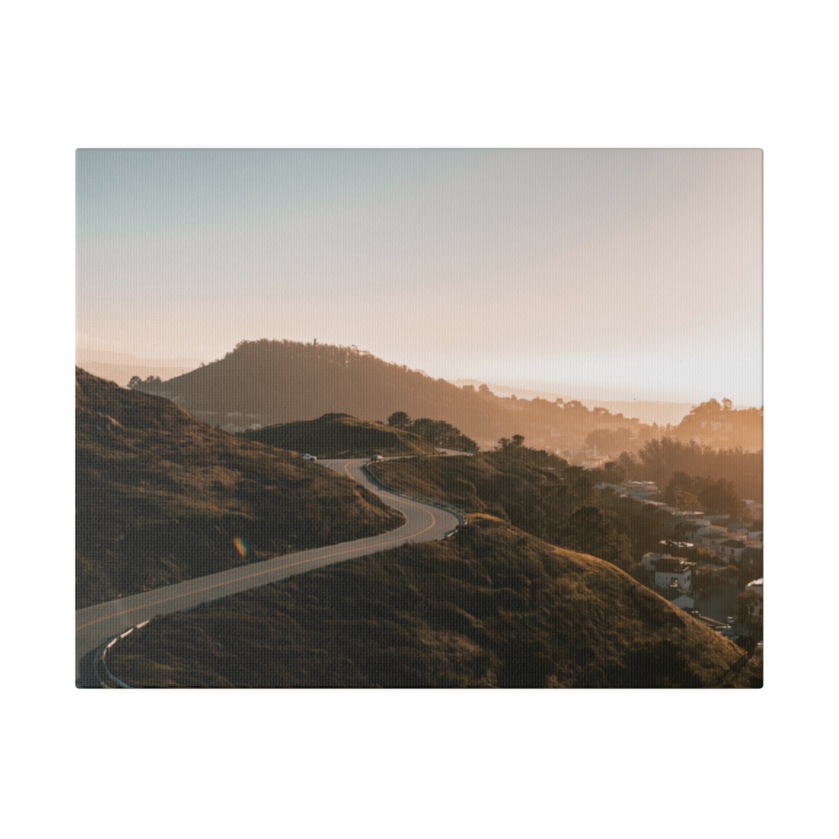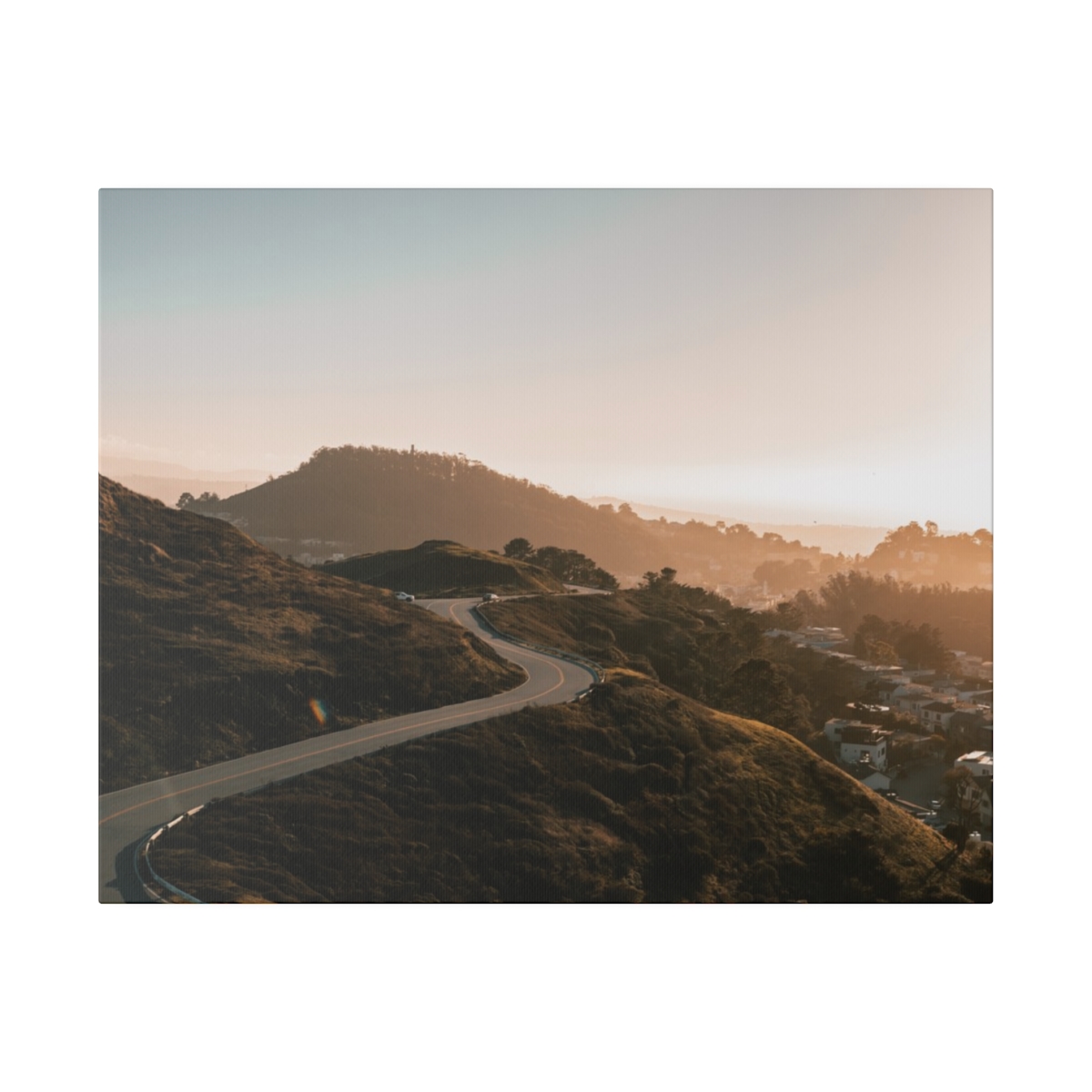 The photo of Twin Peaks Road descending in San Francisco, California captures the essence of the city's iconic landscape. With a panoramic view of the city skyline and bay stretching out before it, this winding road offers a captivating perspective of San Francisco's unique topography. As one of the highest points in the city, Twin Peaks provides an unparalleled vantage point for admiring the urban sprawl below and the Pacific Ocean beyond. The steep grade and sharp turns of this road highlight both the engineering prowess required to navigate San Francisco's hilly terrain and the natural beauty that surrounds it. This image evokes a sense of adventure and exploration as viewers are drawn into the dynamic interplay between man-made infrastructure and nature, making it a compelling subject for photography enthusiasts and nature lovers alike.